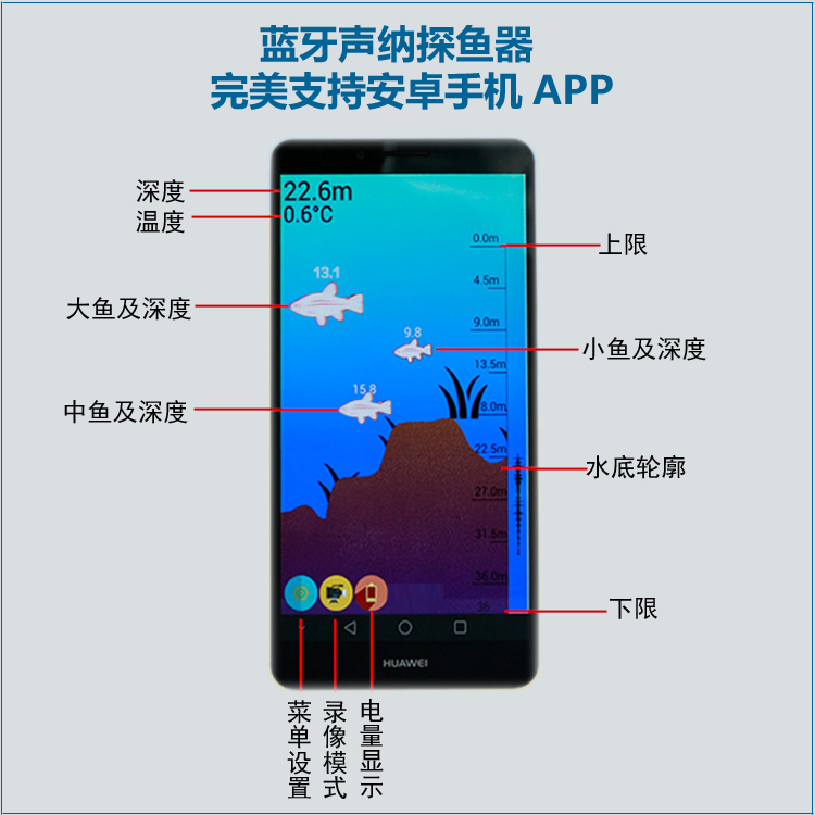 最新蓝牙技术手机探鱼器,支持手机平板安卓系统